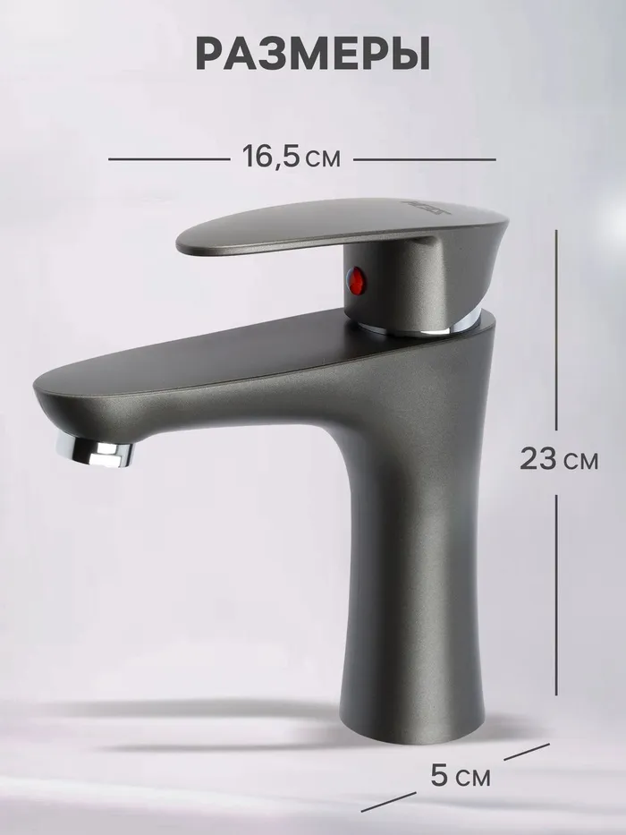 Смеситель для раковины ZEIN Z3656, однорычажный, высота излива 9 см, ABS-пластик, графит — Характеристики