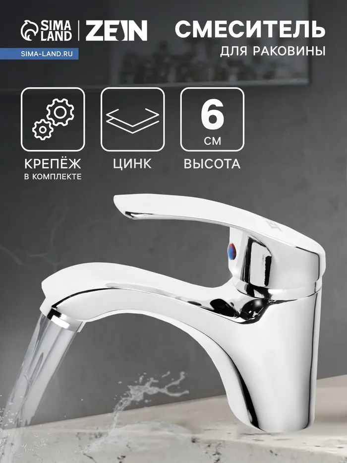 Смеситель для раковины ZEIN Z3721, однорычажный, длина излива 12 см, высокий, пластик, хром — Характеристики