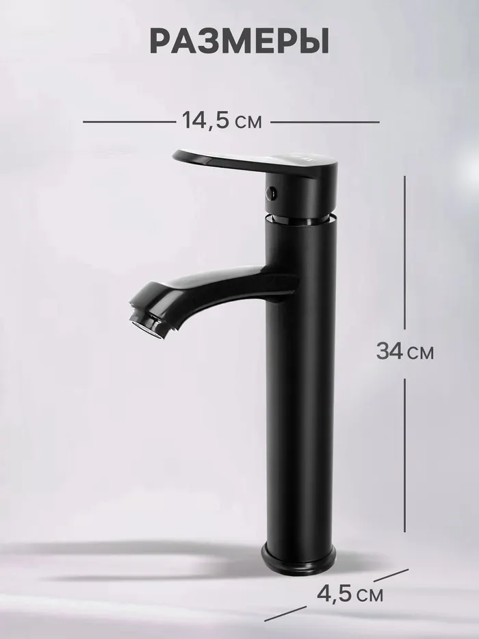 Смеситель для раковины ZEIN Z3723, однорычажный, длина излива 12 см, высокий, пластик, черный — Характеристики