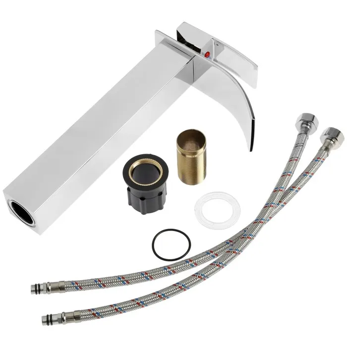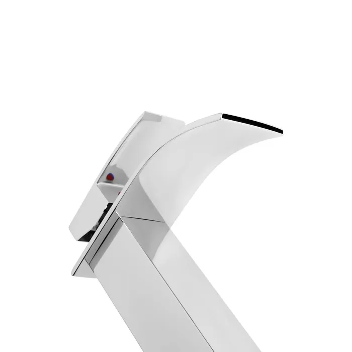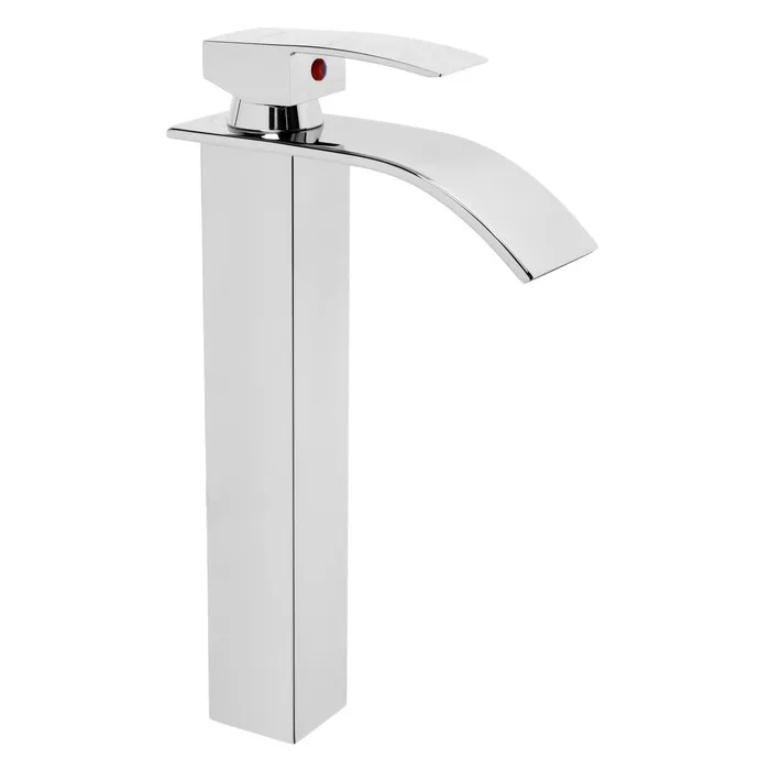 Включение и выключение воды происходит рычагом. Необычная форма излива создает плоскую широкую струю, которую можно сравнить с «водопадом», поэтому поток воды называют каскадный.