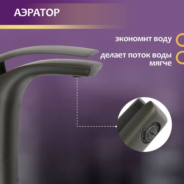 Смеситель для раковины ZEIN Z3797, дизайнерский, однорычажный, картридж 35 мм, графит — Характеристики