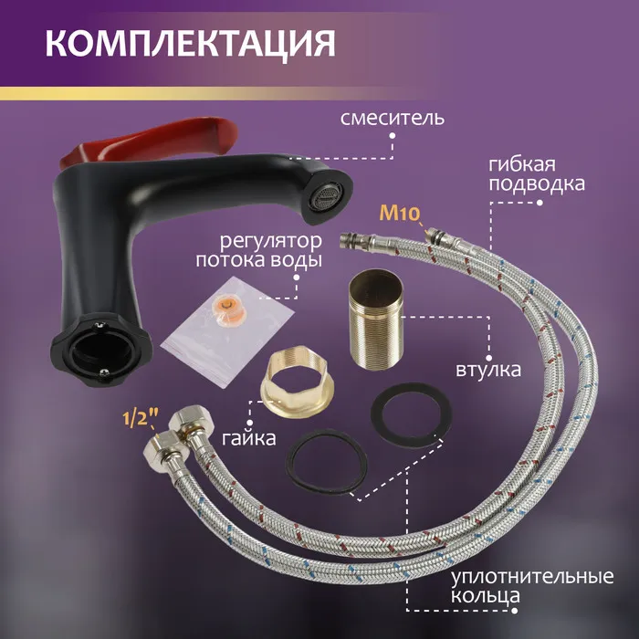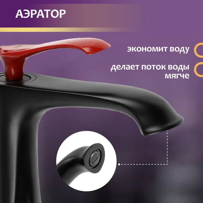 Черный цвет и акцентный красный рычаг придает смесителю изысканный вид, который прекрасно впишется в любой интерьер.
