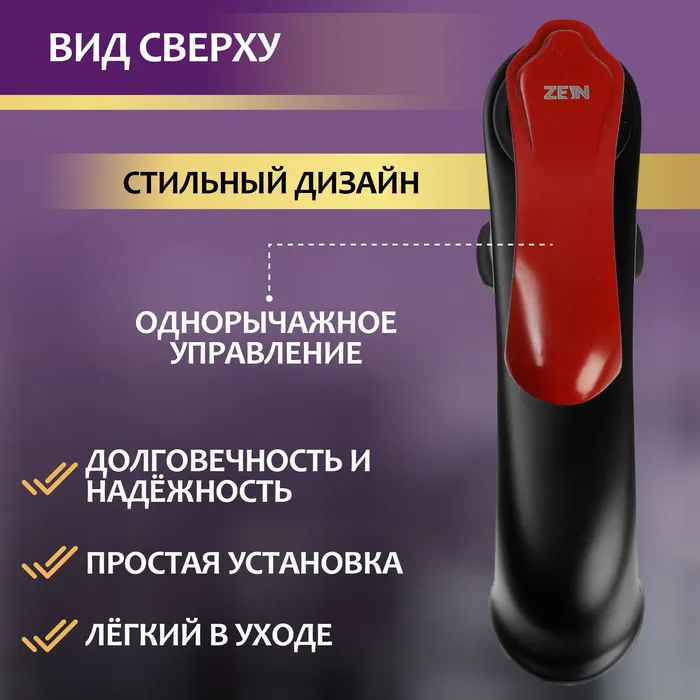 Смеситель для раковины ZEIN предназначен для установки на горизонтальной поверхности — кухонной мойке или столешнице.