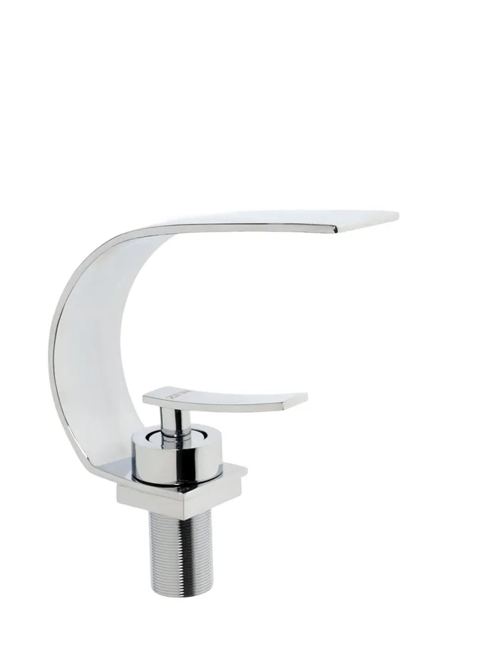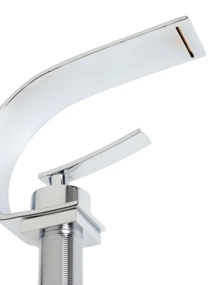 Включение и выключение воды происходит рычагом. Необычная форма излива создает плоскую широкую струю, которую можно сравнить с «водопадом», поэтому поток воды называют каскадный.