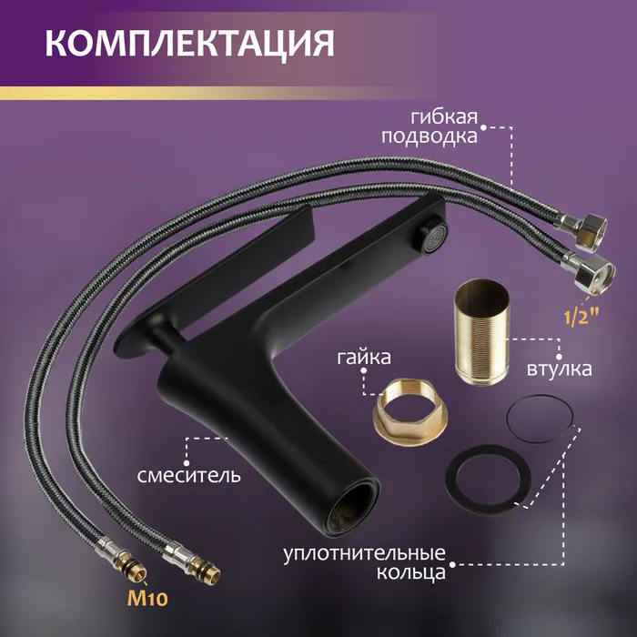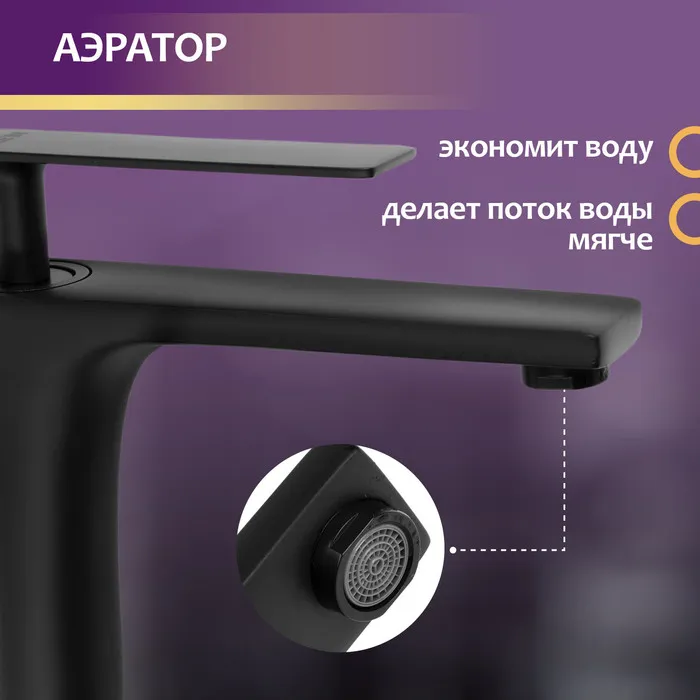 Смеситель для раковины ZEIN Z3872, однорычажный, высота излива 12 см, латунь, черный — Характеристики