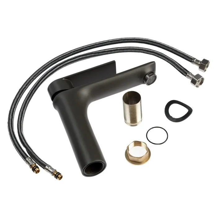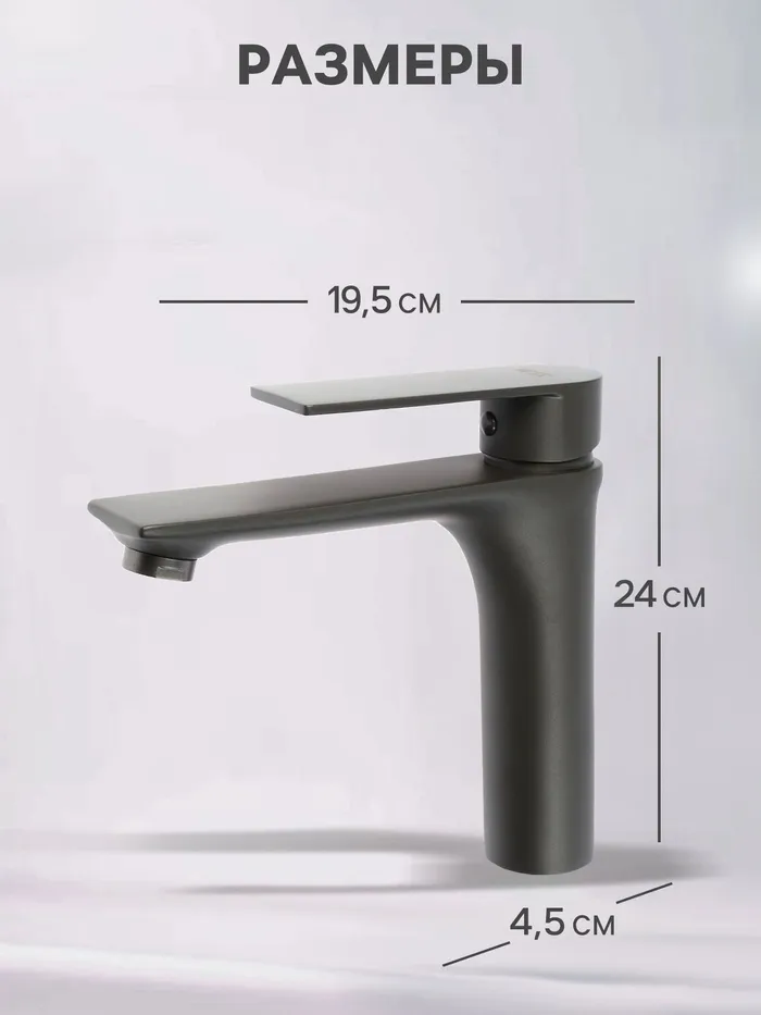 Смеситель для раковины ZEIN Z3876, однорычажный, высота излива 14 см, латунь, графит — Характеристики