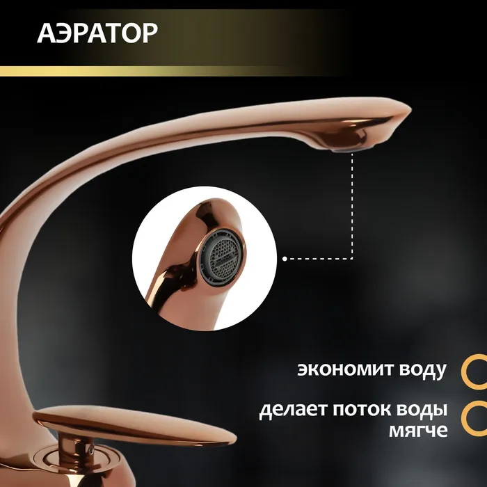 Элегантное покрытие в оттенке «rose gold» добавляет роскоши и изысканности, делая смеситель прекрасным украшением ванной комнаты.