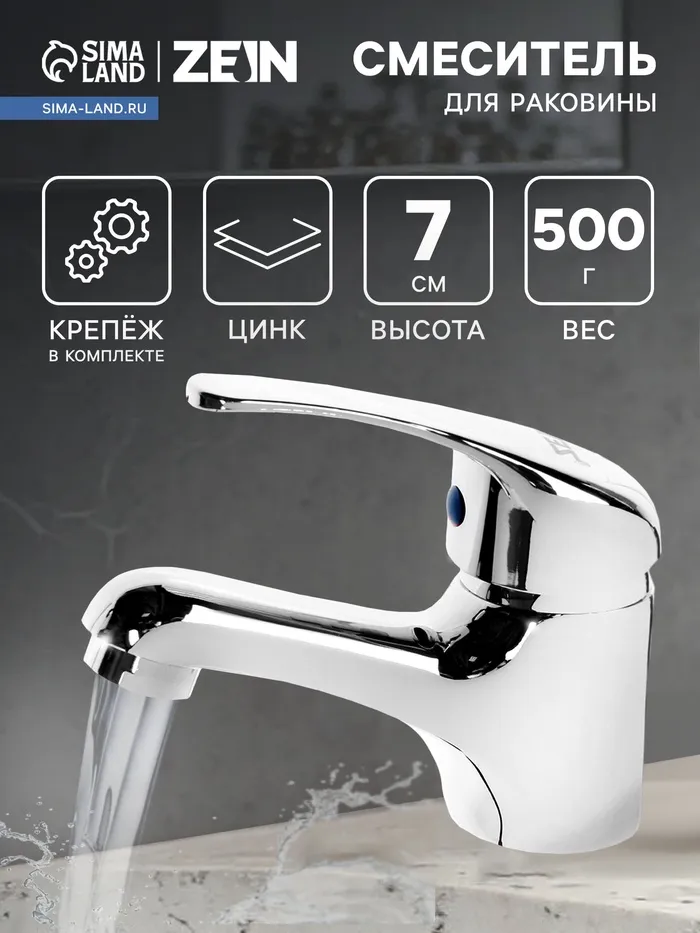Смеситель для раковины ZEIN Z50152, однорычажный, картридж 35 мм, с подводкой, хром — Характеристики