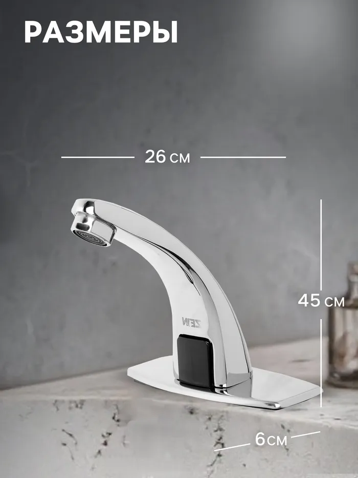 Смеситель для раковины ZEIN ZC-012, сенсорный, латунь, хром — Характеристики