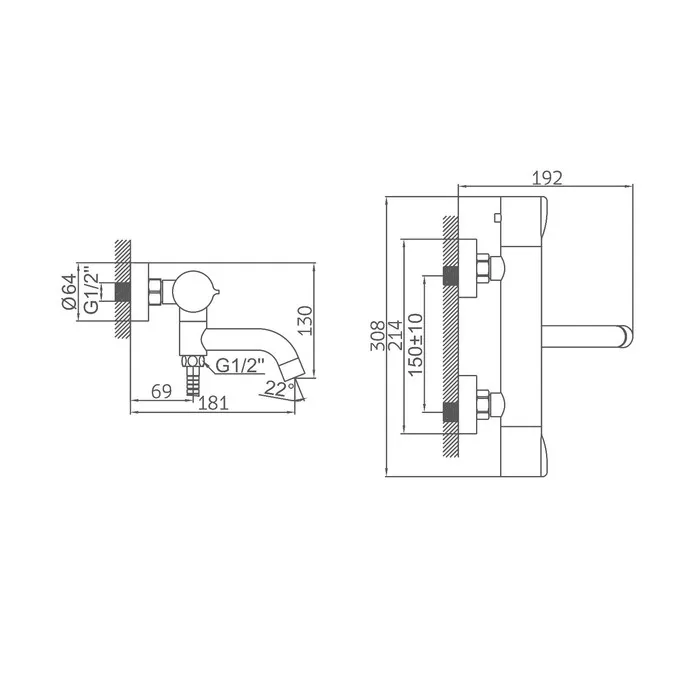 Смеситель для ванны Accoona A62305, двухвентильный, термостатический, душевой набор, хром — Характеристики