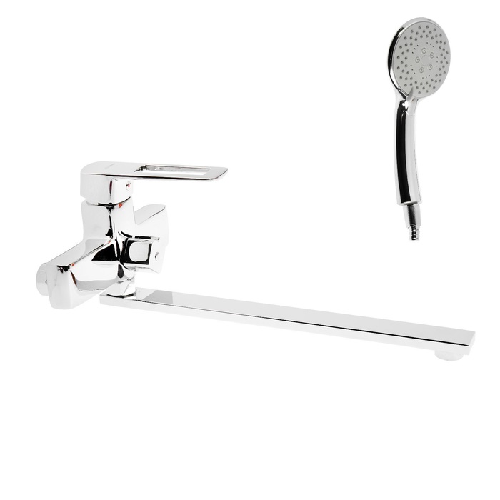 В комплект также входит лейка и шланг для душа.
