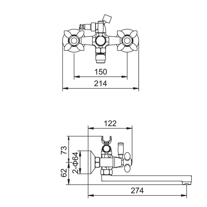 Смеситель для ванны Accoona A6482G, двухвентильный, белый/хром — Характеристики