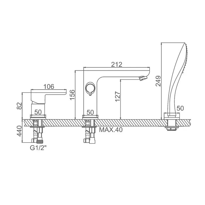 Смеситель для ванны Accoona A6519G, на три отверстия, врезной, однорычажный, латунь, белый — Характеристики