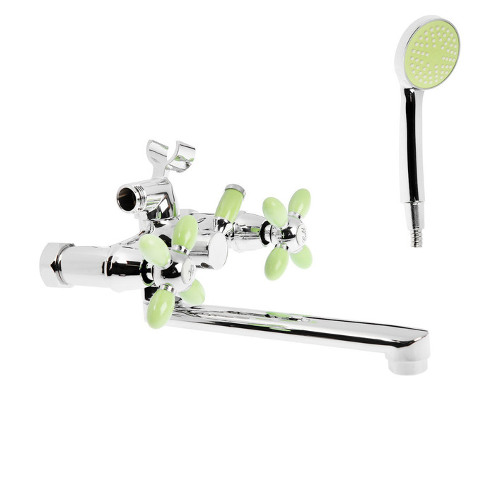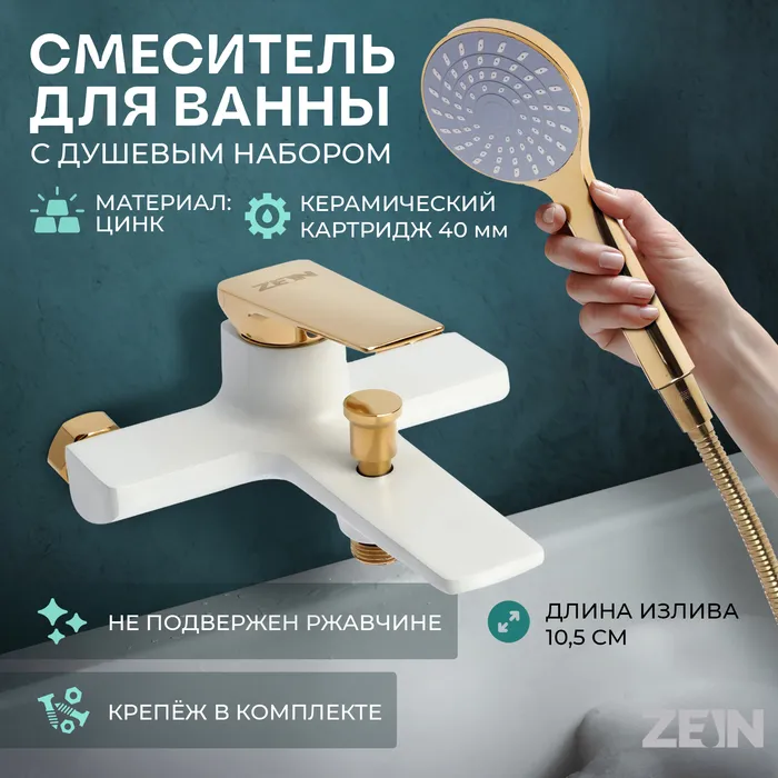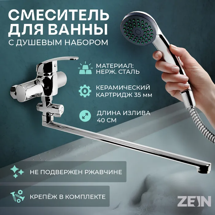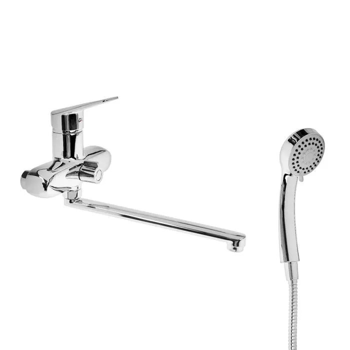 - Душевой набор в комплекте: Включает все необходимое для подключения душа. Длина излива 325 мм удобна для наполнения глубоких ёмкостей.