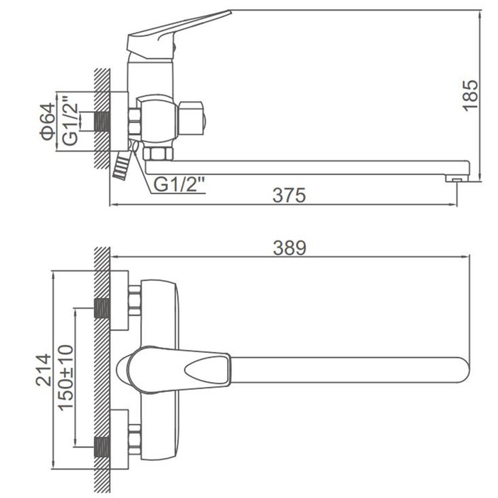 - Прямой излив: Обеспечивает точное направление водяной струи. Настенный монтаж подходит для стандартных ванн.