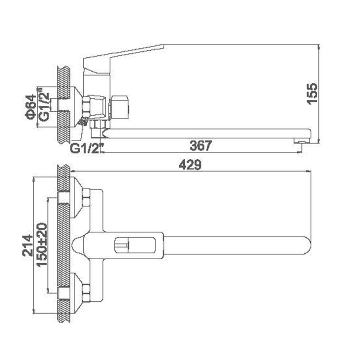 Смеситель для ванны Accoona A71109, однорычажный, латунь, хром — Характеристики