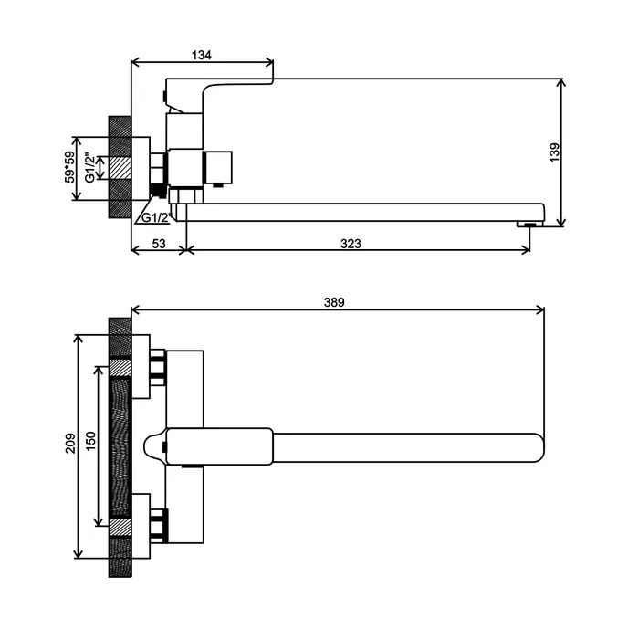 Смеситель для ванны Accoona A71131, картридж 25 мм, излив 35 см, латунь, хром/черный — Характеристики