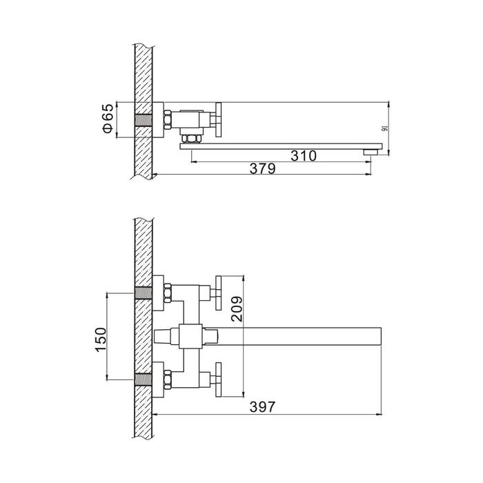 Смеситель для ванны Accoona A7175, двухрычажный, дивертор в корпусе, с душевым набором — Характеристики