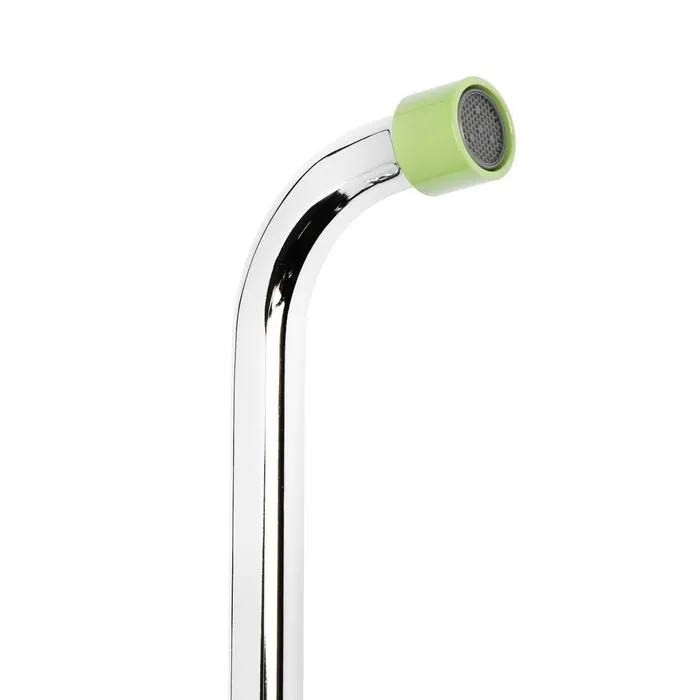 Смеситель имеет длинный поворотный излив и 2 вентиля для регулирования подачи воды. Сантехника устанавливается на стену. Режим «Душ» переключается поворотом вентиля. Яркий смеситель зелёного цвета станет украшением любого интерьера.