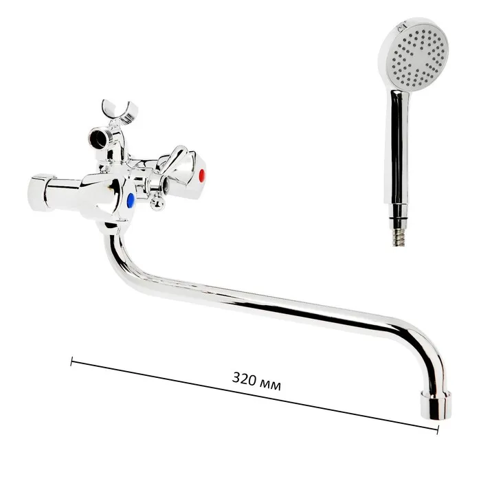 Смеситель для ванны "ЦС-СМ СМ503820", двухвентильный, настенный, с душевым набором, хром — Характеристики