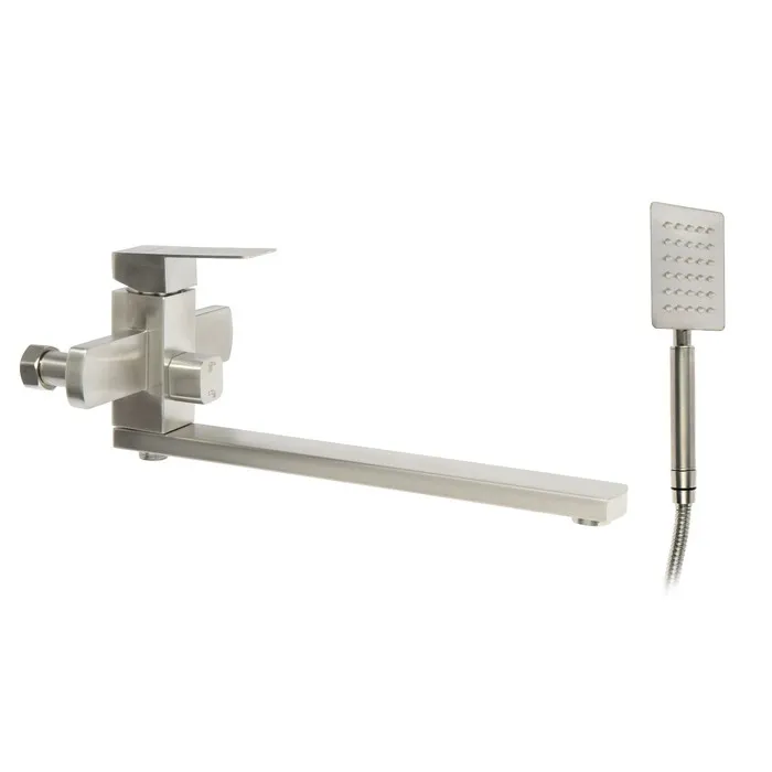 Квадратная форма придает смесителю оригинальный вид и отлично вписывается в различные ванные комнаты.
