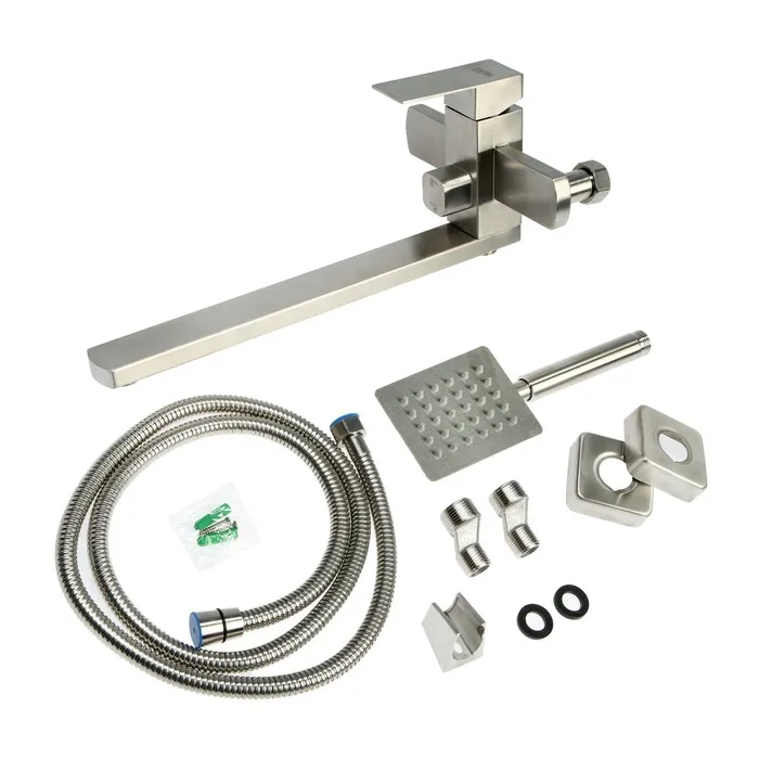 В комплект входит душевой набор, который делает его универсальным и добавляет функциональности пользованию.