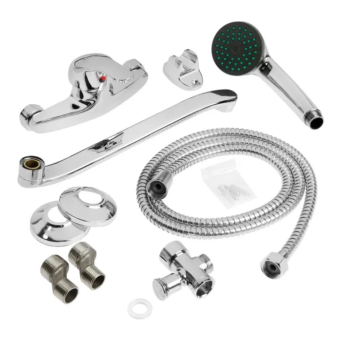 В комплект входит душевой набор, что делает его практичным выбором для ванной комнаты.