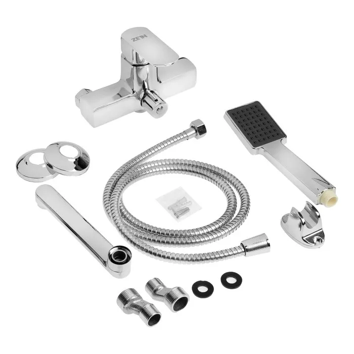 Смеситель для ванны ZEIN Z2245, короткий излив, картридж 35 мм, с душевым набором, хром — Характеристики