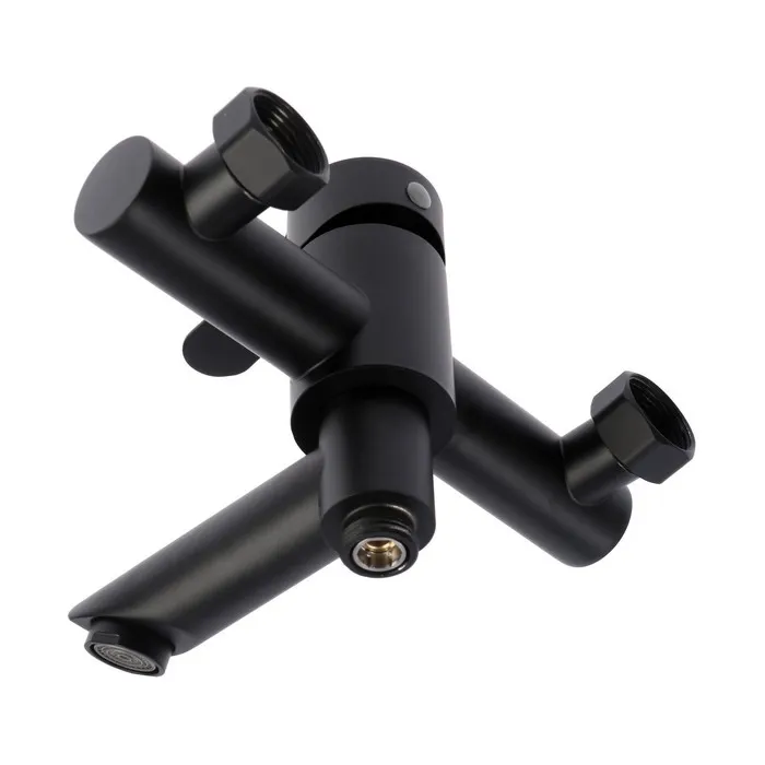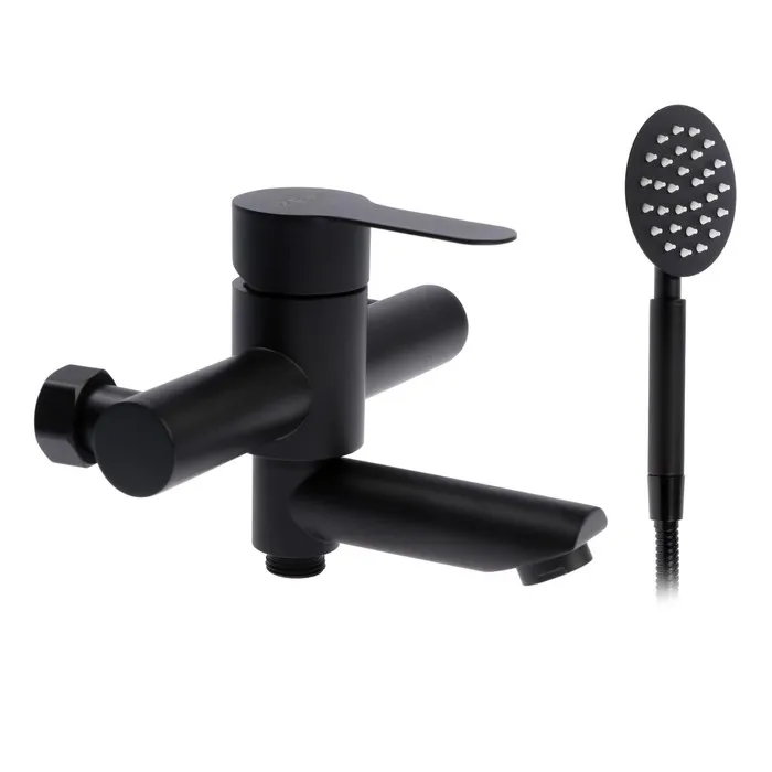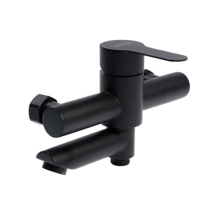 Смеситель для ванны ZEIN Z2649F выполнен из нержавеющей стали с элегантным черным покрытием, что придаёт ему современный и стильный вид.