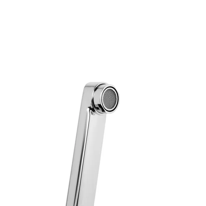 Хромированное покрытие делает смеситель не только стильным, но и защищённым от коррозии и загрязнений, что облегчает уход за ним.