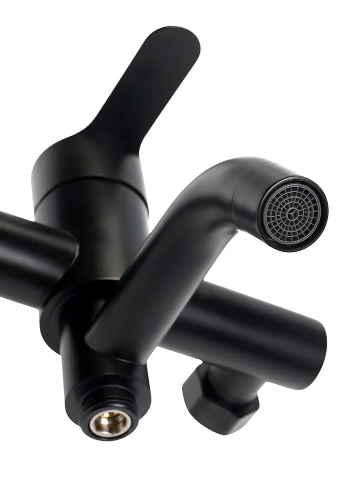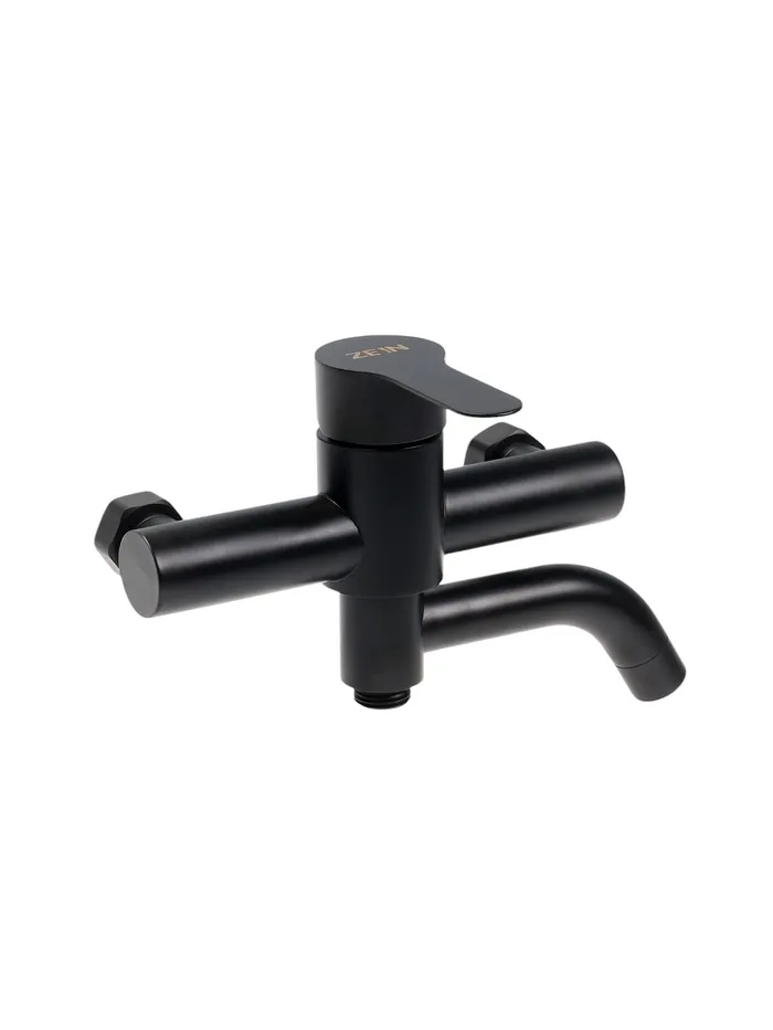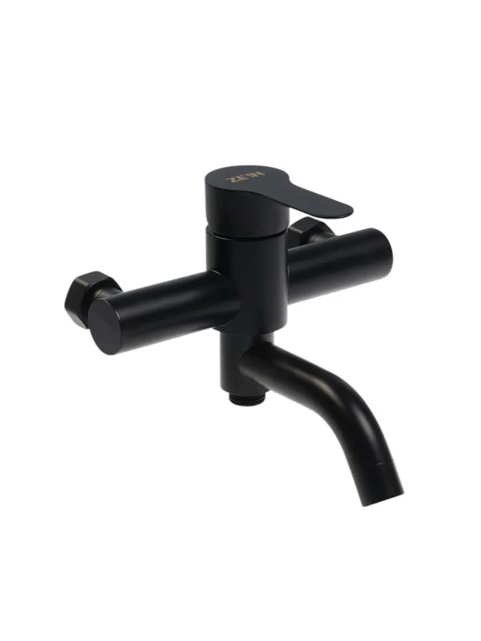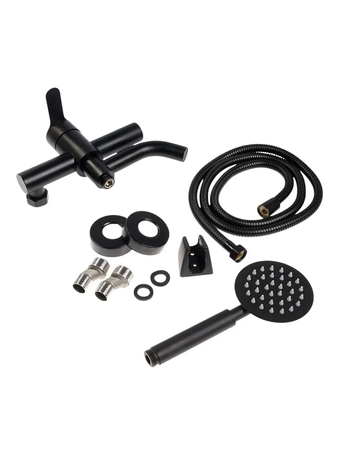 Смеситель для ванны ZEIN Z3491, изогнутый излив, душевой набор, нержавеющая сталь, черный — Характеристики