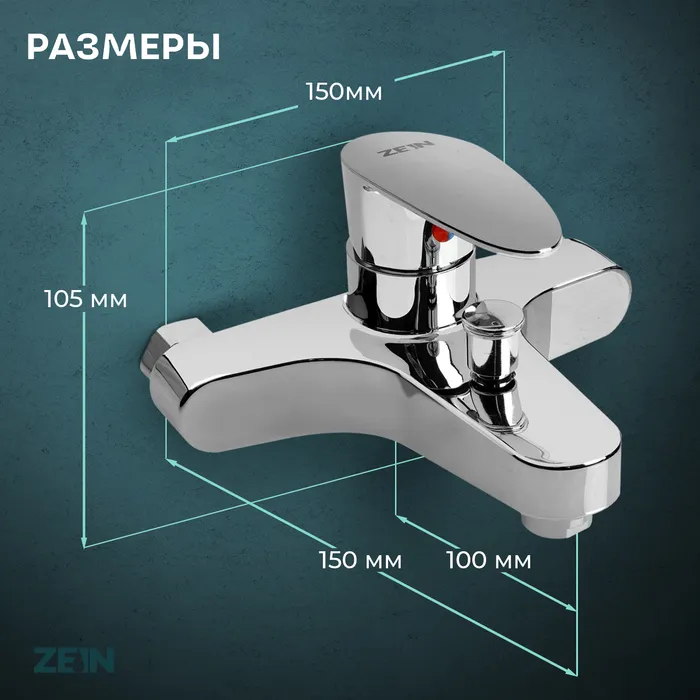 Смеситель для ванны ZEIN Z3677, однорычажный, без душевого набора, ABS-пластик, хром — Характеристики