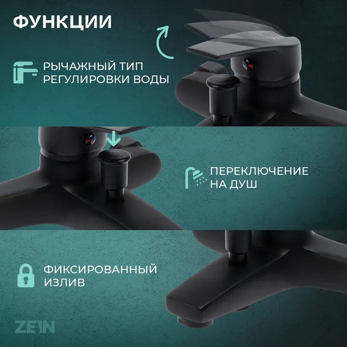 Смеситель для ванны ZEIN – это надежное и стильное устройство, предназначенное для смешивания горячей и холодной воды.
