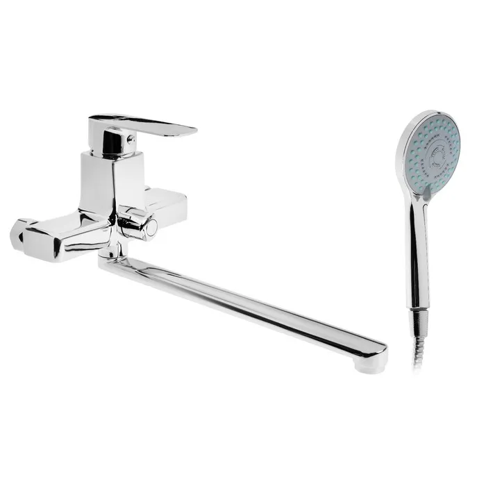 Cмеситель для ванны Accoona A7060, однорычажный, излив 300 мм, с душевым набором, хром