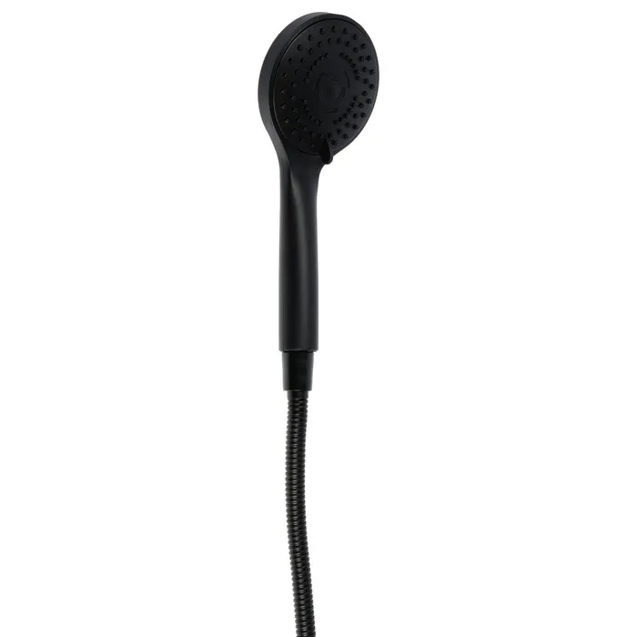 Оснащен смеситель душевым набором, включающим лейку с 5 режимами подачи воды, что обеспечивает комфортное использование.