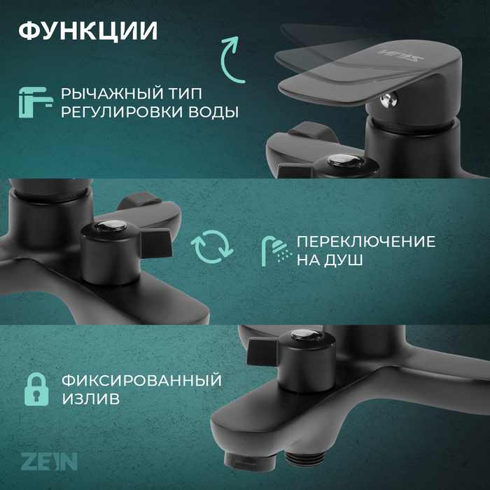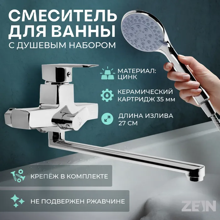 Смеситель для ванны ZEIN Z3852 — это надежное и стильное устройство, предназначенное для смешивания горячей и холодной воды.