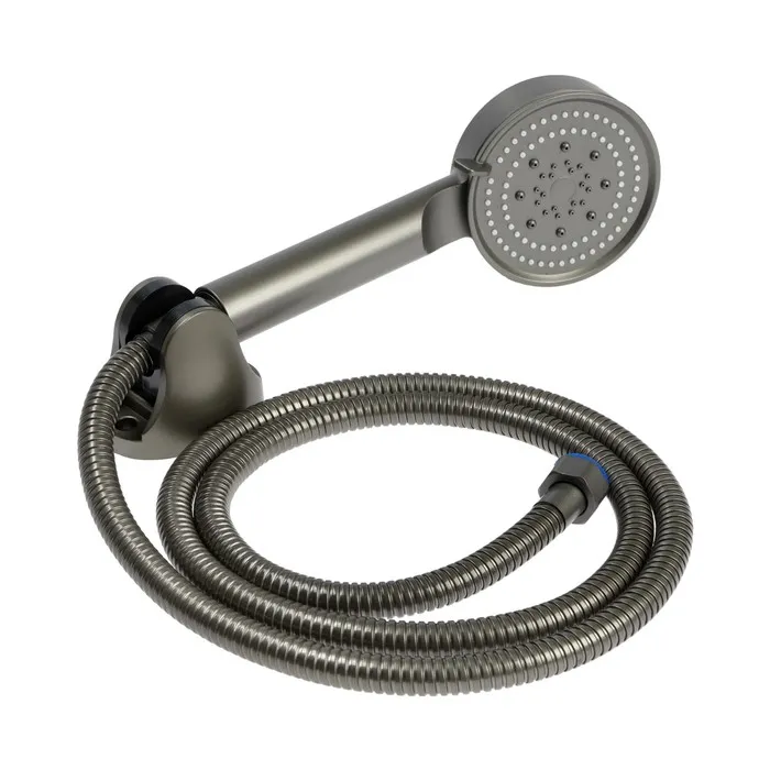 Оснащен смеситель душевым набором, включающим лейку с 5 режимами подачи воды, что обеспечивает комфортное использование.
