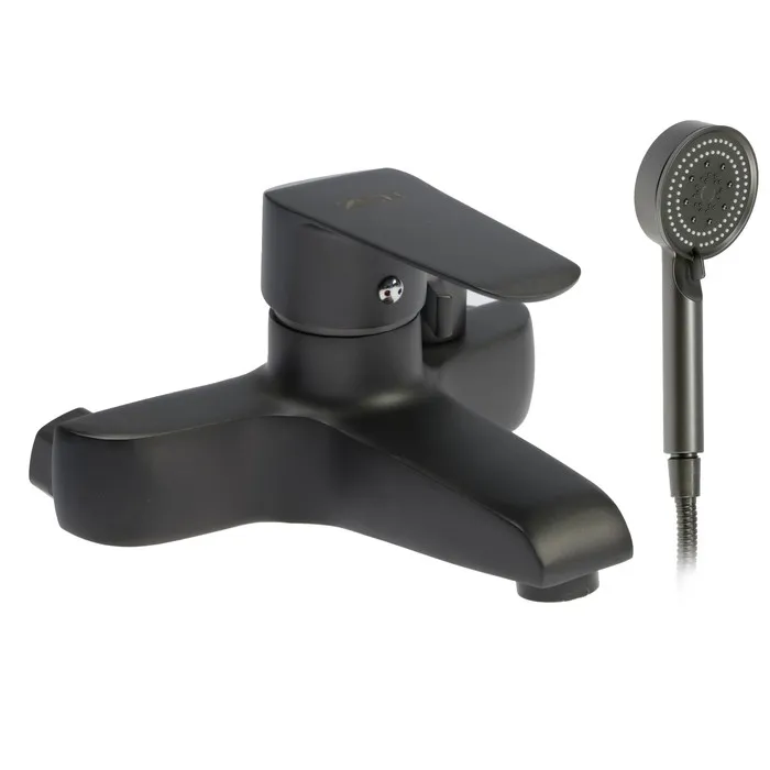 Оснащен смеситель душевым набором, включающим лейку с 5 режимами подачи воды, что обеспечивает комфортное использование.