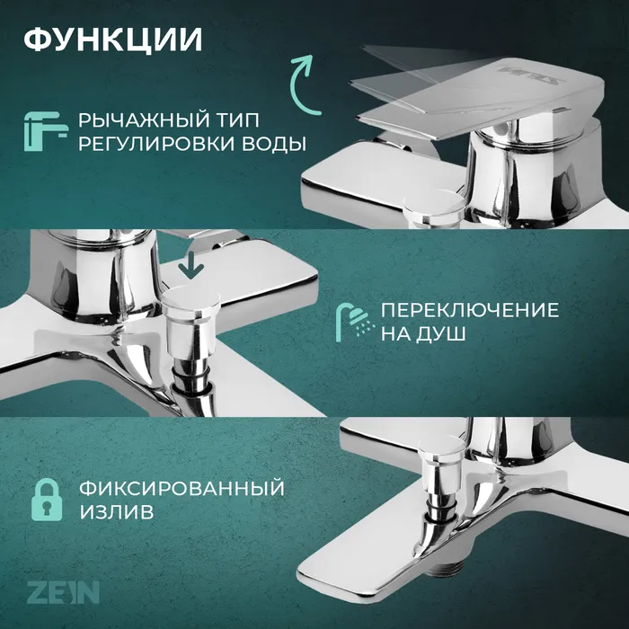 Смеситель ZEIN идеально подойдет для любой ванной комнаты, обеспечивая надежность и комфорт.