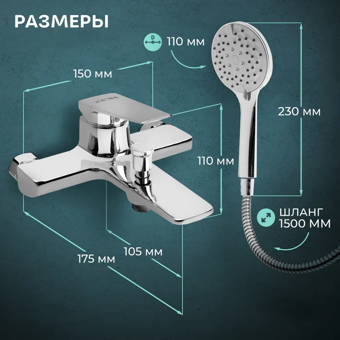 Оснащен смеситель душевой лейкой с 3 режимами подачи воды, что обеспечивает комфортное использование.
