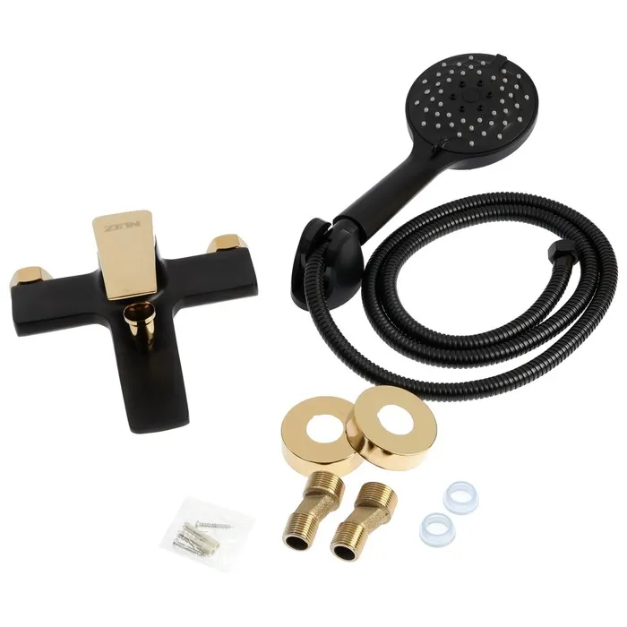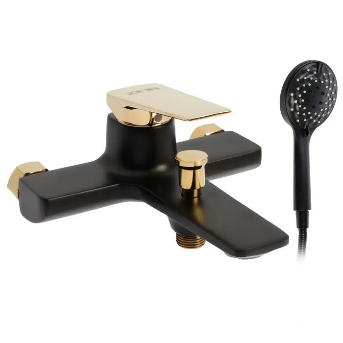Смеситель для ванны ZEIN Z3890, однорычажный, лейка 5 режимов, шланг, держатель, черный/gold= — Характеристики