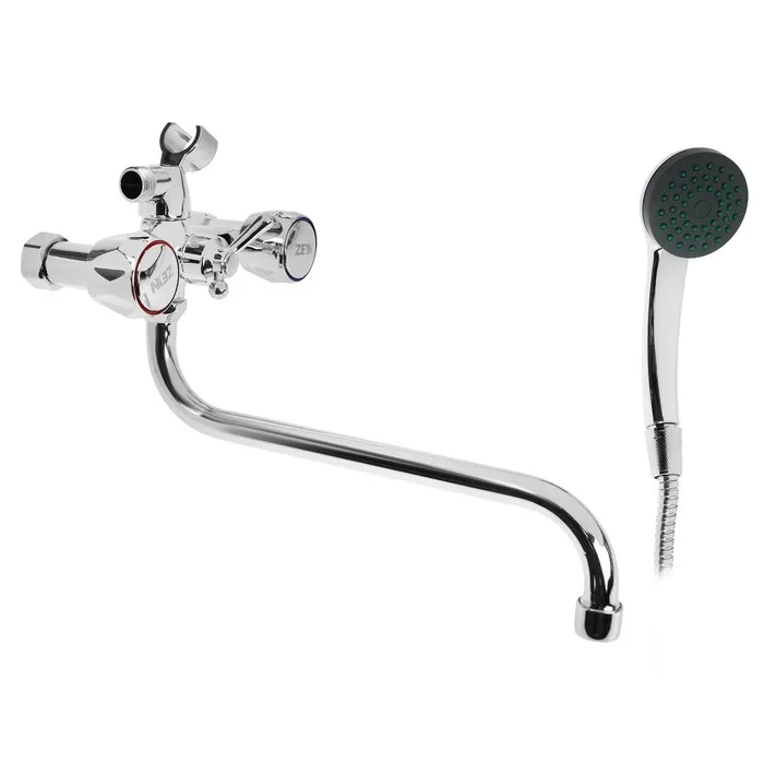 Смеситель для ванны ZEIN Z4327, кран-букса 1/2", излив 27 см, с душевым набор, хром — Характеристики