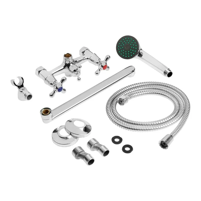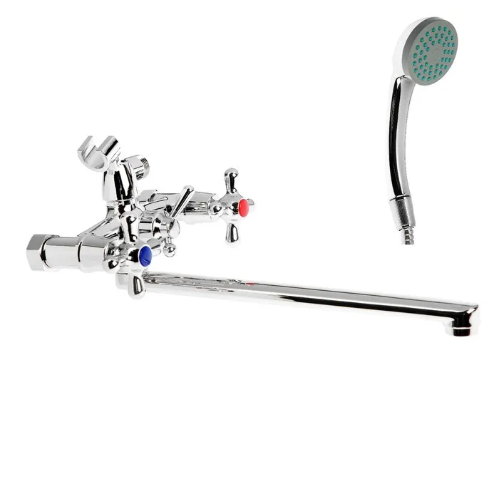Смеситель для ванны ZEIN ZC2051, излив 30 см, кран-букса латунь 1/2", душевой набор, хром — Характеристики