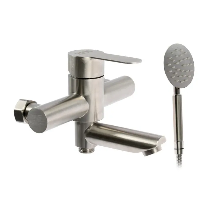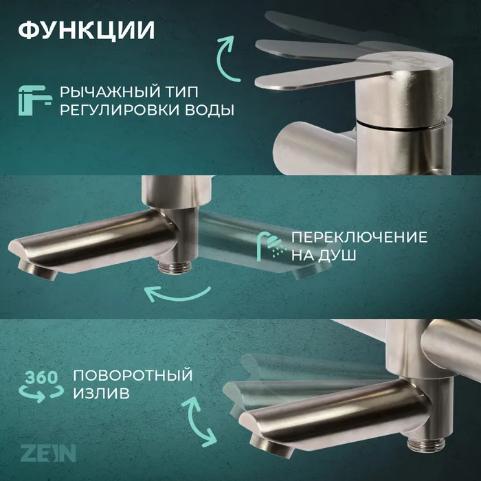 Смеситель для ванны ZEIN ZS5 выполнен из нержавеющей стали и предназначен для смешивания горячей и холодной воды.