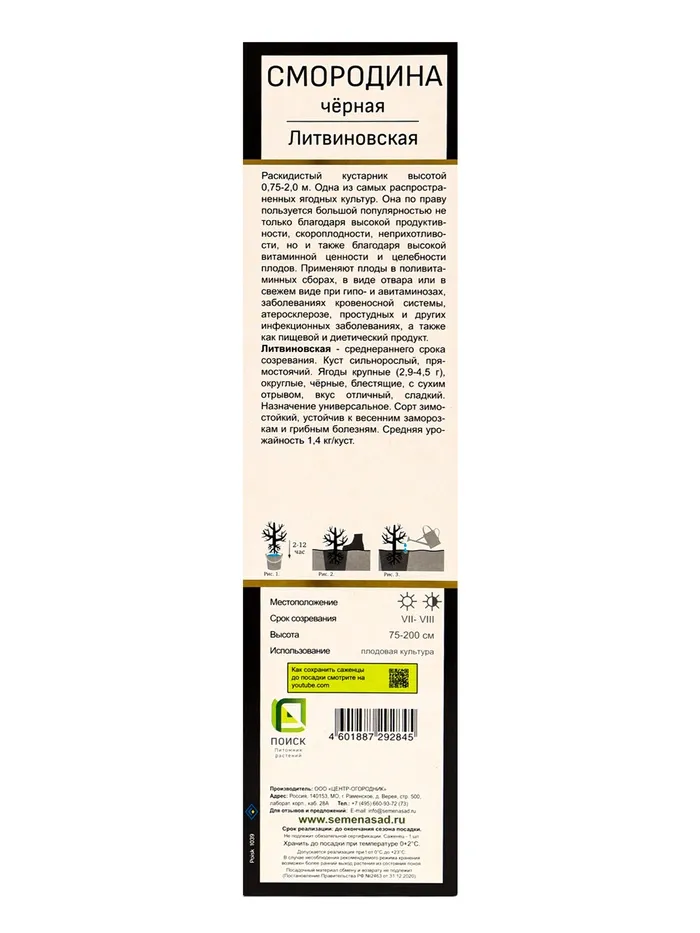 Смородина черная перспективные сорта «Литвиновская», 1 шт., туба — Характеристики