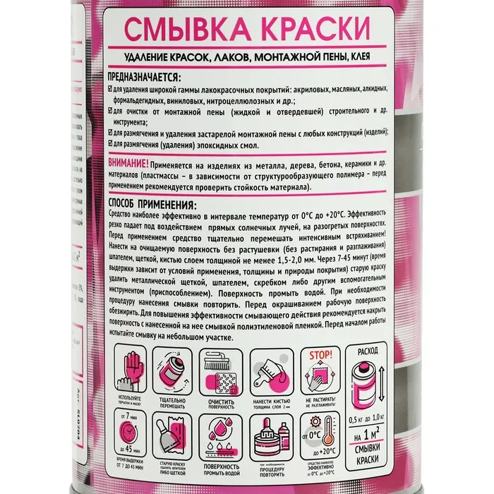Специальный состав средства позволяет легко справляться с многослойными покрытиями, быстро растворяя даже стойкие краски и лаки. Смывка действует глубоко, проникая в структуру покрытия, что значительно упрощает процесс подготовки поверхности к повторному окрашиванию или реставрации.