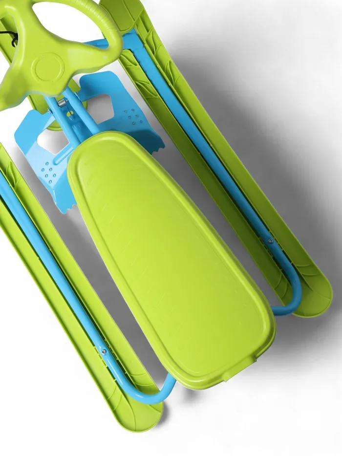 • Оптимальные размеры – в разложенном виде снегокат имеет размеры 109 × 51 × 44 см, что делает его удобным для катания.