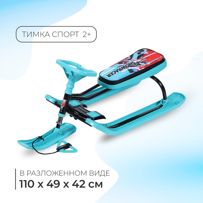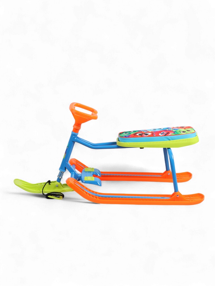 - Мягкое сиденье – обеспечивает максимальный комфорт во время катания, позволяя детям удобно разместиться на снегокате.