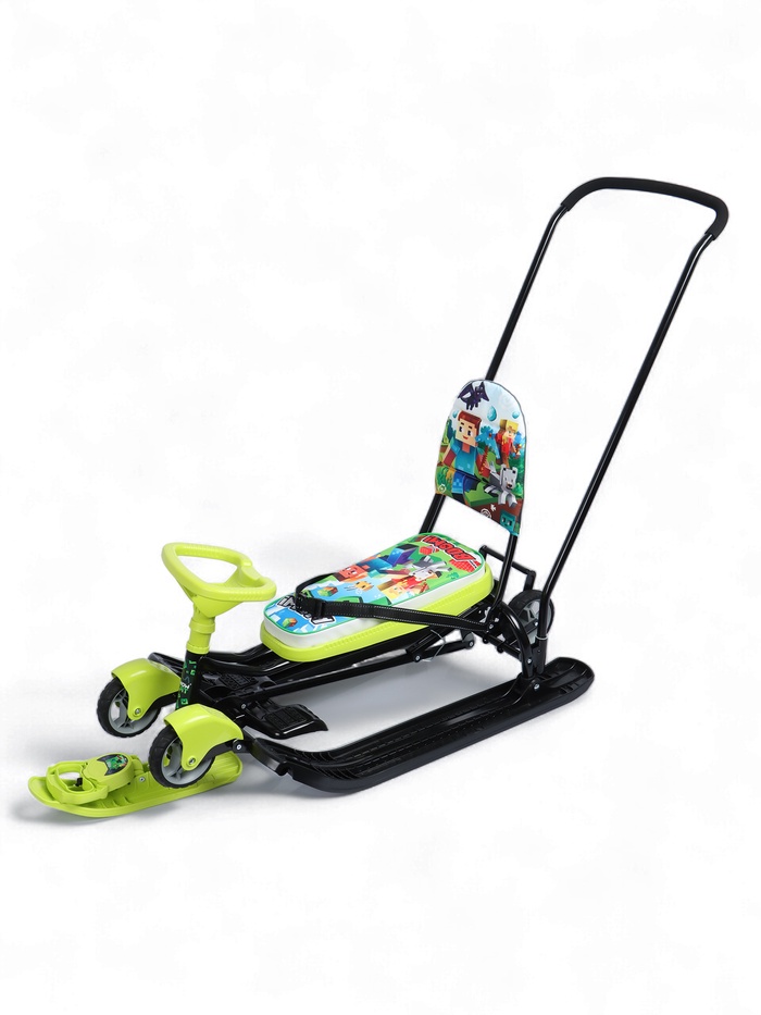 Снегокат «Пиксели», с родительской ручкой, со спинкой, зелёный, ТС6-СЛ/ПК Snow Cat — Характеристики