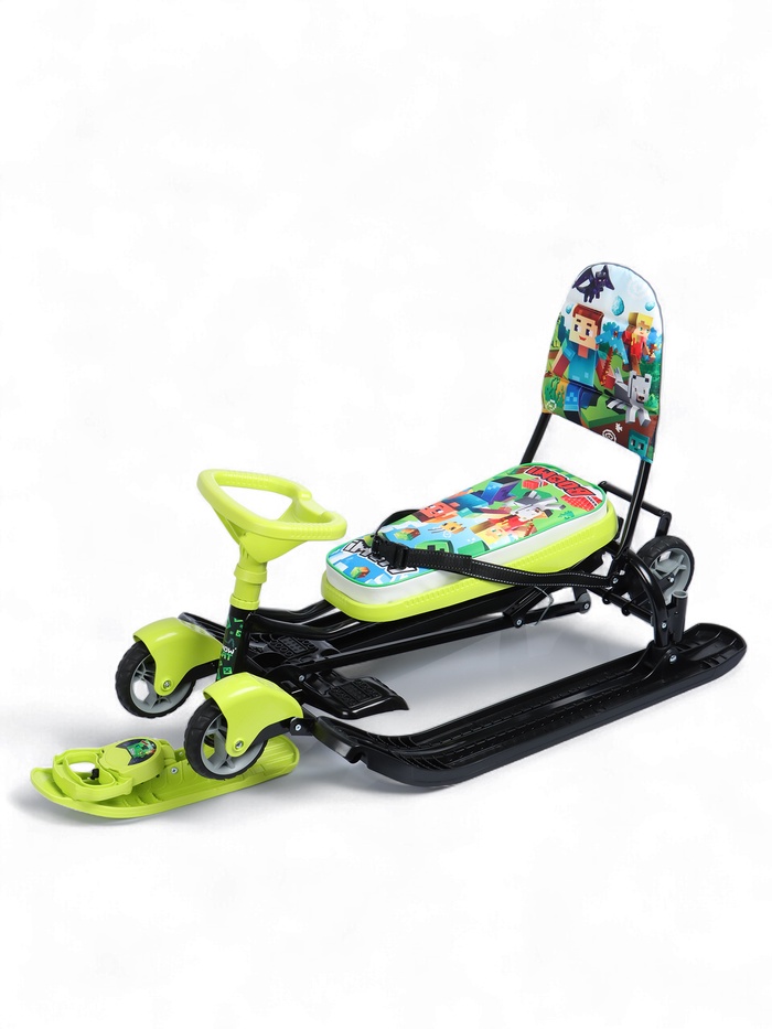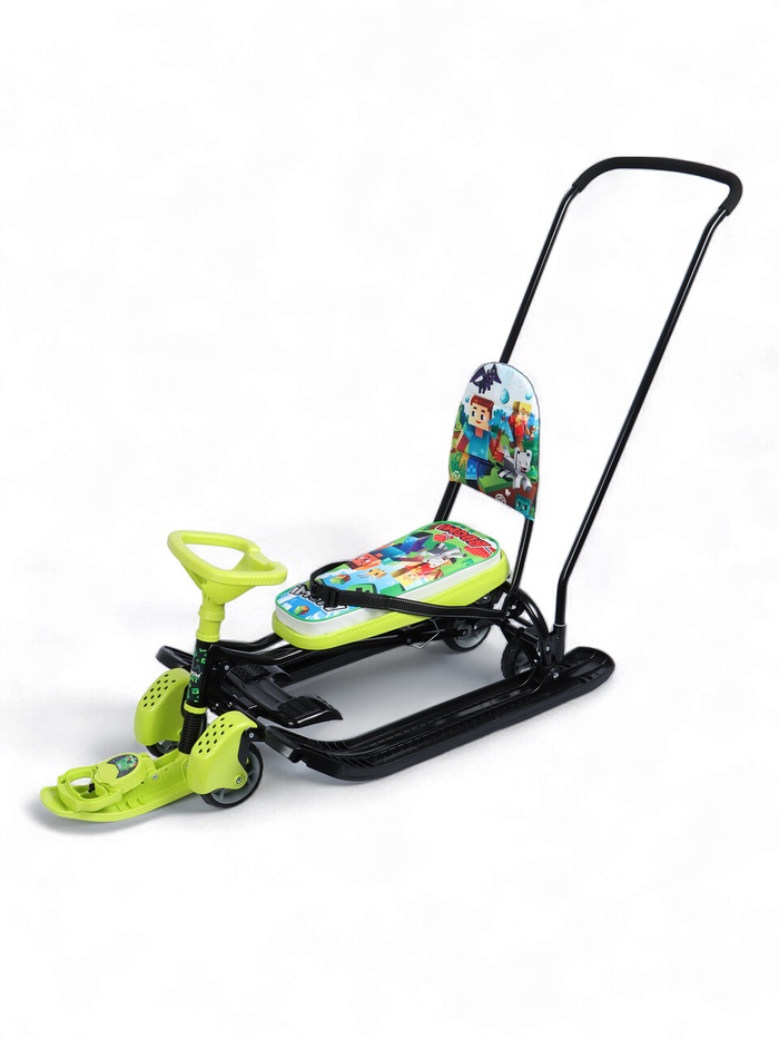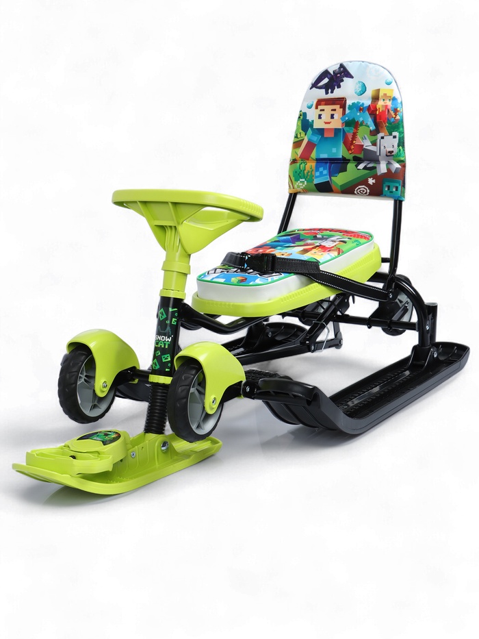 Снегокат «Пиксели», с родительской ручкой, со спинкой, зелёный, ТС6-СЛ/ПК Snow Cat — Характеристики